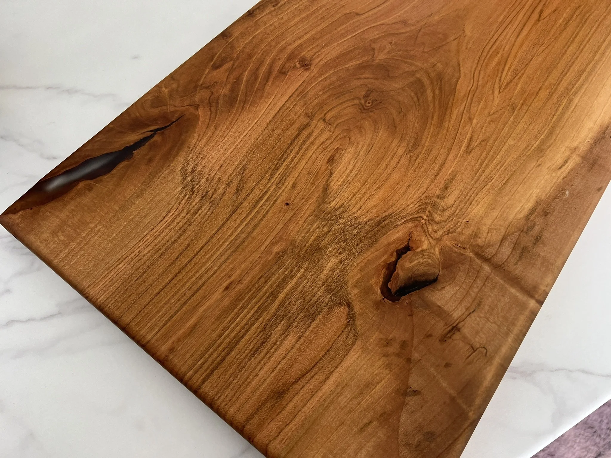 This beautiful board was custom made to a clients specs. It has a lot of character and a stunning grain! Its is a great blend of wood and resin.